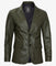 Step up your style with this Men's Olive Green Leather Blazer, crafted from 100% real lambskin. Featuring a classic two-button front, notch lapel, and flap pockets, it blends sophistication with everyday wearability. The tailored fit and soft lining offer comfort, while the unique color adds a bold, refined touch.