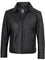 This men's matte black Harrington jacket offers a sleek, polished appearance with its smooth texture, classic shirt collar, and hidden front zipper. Crafted for both comfort and adaptability, it includes vertical waist pockets and a plush inner lining, making it perfect for smart-casual occasions.