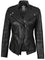 Crafted from 100% real lambskin with a smooth polyester lining, it features a distinctive asymmetrical dual zipper front, an upright collar, and classic shoulder epaulettes. Practicality meets style with two outer pockets and an inside pocket, all in timeless black.